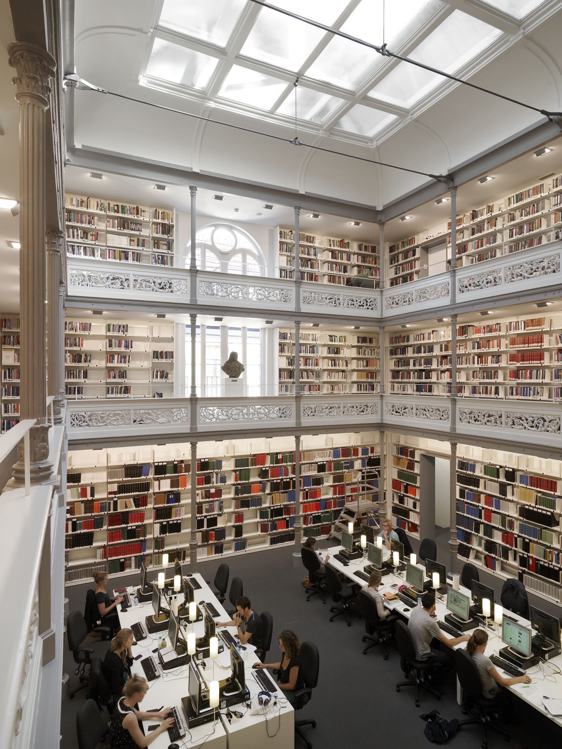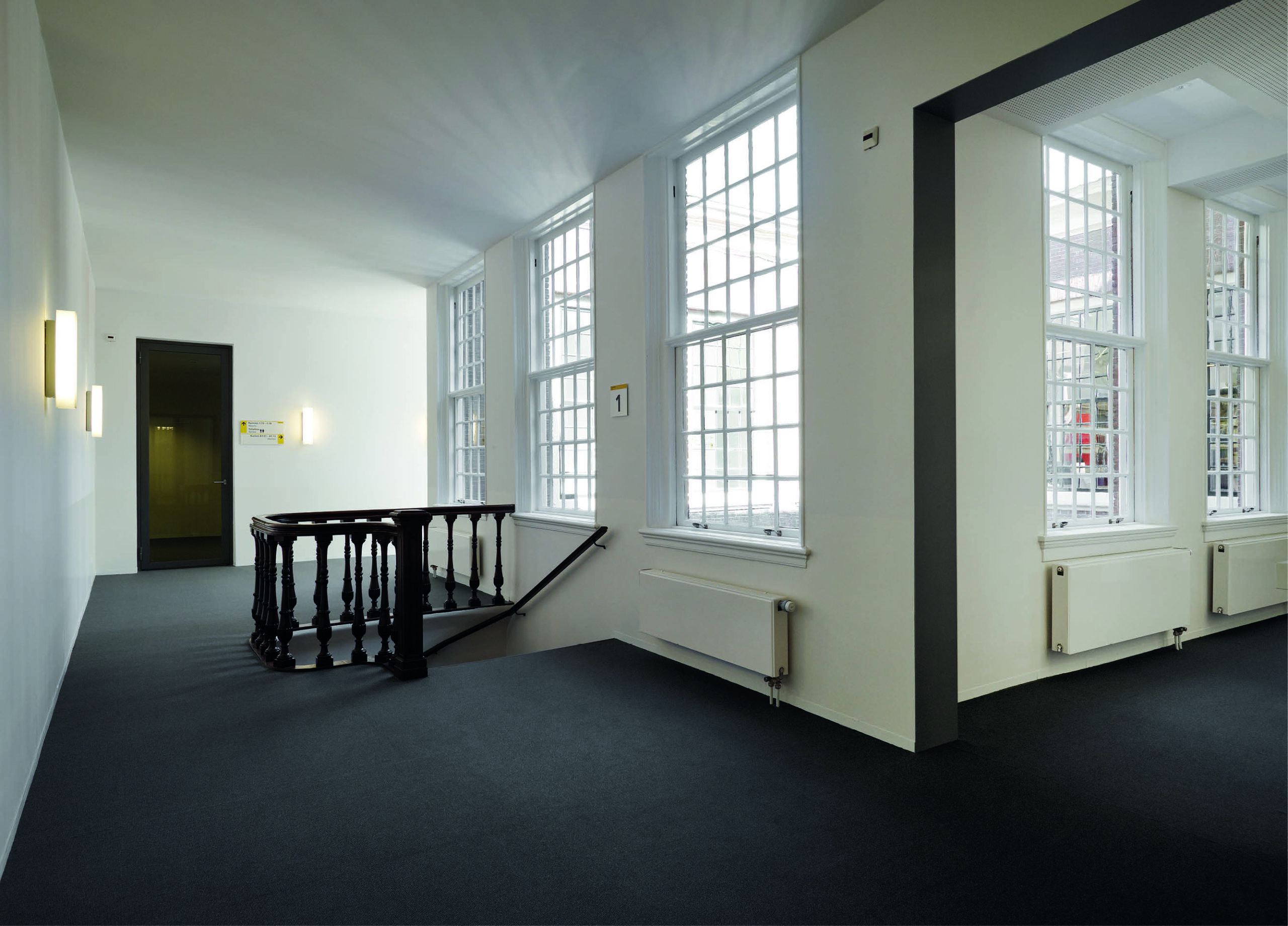 De kenner ziet het onmiddellijk bij binnenkomst van de universiteit: de Hongaarse punten in het parket. Hier pasten we ouderwets vakmanschap toe. Het trappenhuis kreeg houten lambriseringen en parket op de traptreden. Waar mogelijk zetten we onze eigen specialisten in. En als het nodig is, werken we samen met vakmensen uit heel Europa. Samen zorgen we voor het mooiste resultaat, of het nu gaat om parket, marmoleum, rubber of tapijttegels.
