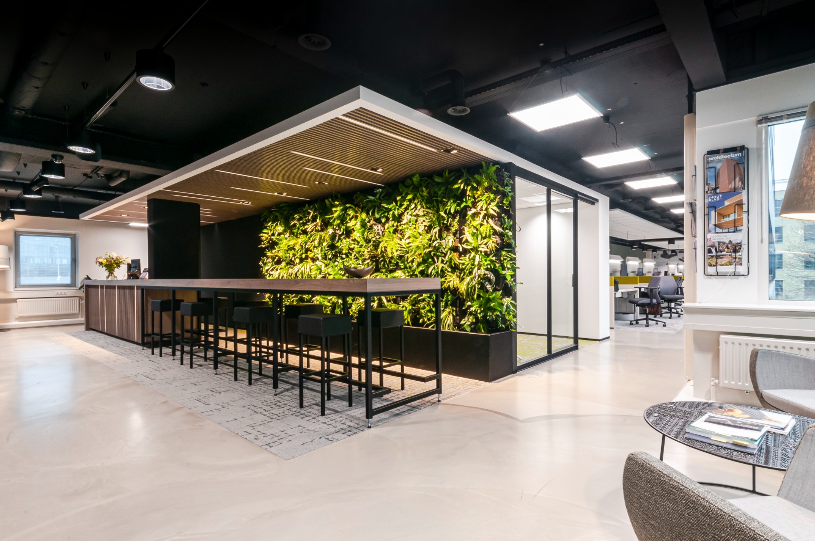 Om jouw werkomgeving te realiseren, hebben we interieurontwerp én afbouw én inrichting in eigen huis. Minstens zo belangrijk: alle disciplines zijn even sterk vertegenwoordigd. Dat is echt uniek. Hierdoor kunnen we jou alles uit handen nemen en krijgt alles evenveel aandacht: van interieurontwerp tot realisatie, van constructieve ingrepen tot accessoires, van techniek tot afwerking, van vloeren tot plafonds, van wanden tot keuken, van meubilair tot sanitair.